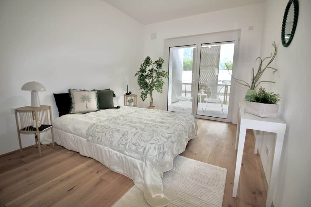 Ob Garten mit Baumbestand oder großzügiger Balkon, Ausblick auf den Hochstaufen oder auf den Predigtstuhl, kompakt oder geräumig – jede der insgesamt 42 Wohnungen überzeugt auf ihre eigene Art und Weise und besticht durch Eleganz, Raffinesse und Stil. Hochwertige Echtholzparkettböden, eine große Auswahl an ansprechenden Fliesen, elegante Sanitärausstattungen sowie extra Stauraum in den Balkontrennwände, sind nur ein Teil der ansprechenden und durchdachten Ausstattung von Hillebrand.