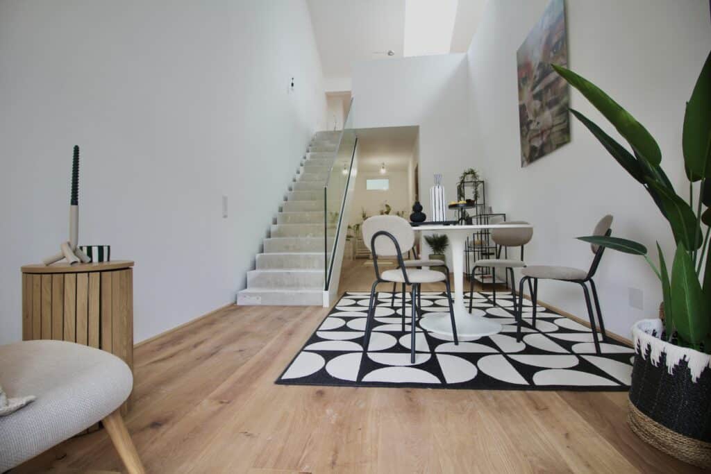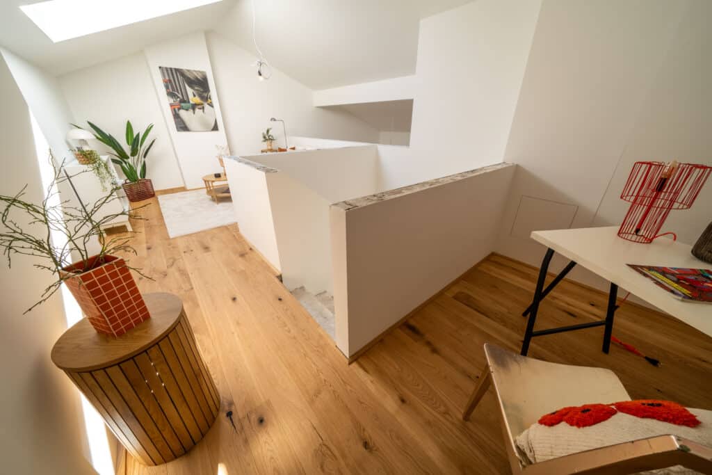 - Hochwertiger Echtholzparkettboden mit Fußbodenheizung